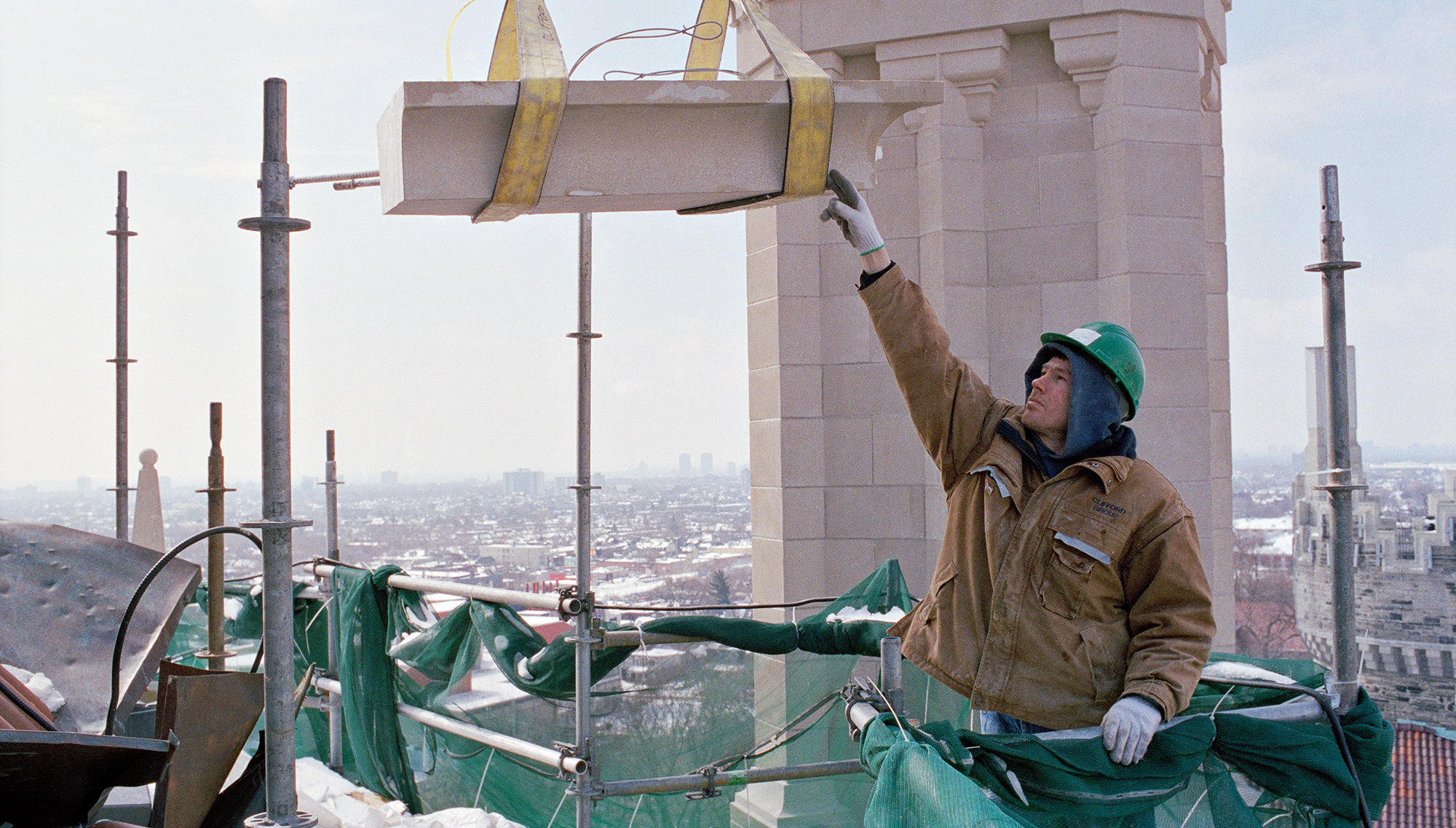 Complexity of materials, building height, the scope of deterioration and the need for the site to remain open throughout construction presented unique challenges to completing the project. Roman stone, the precursor to precast concrete, had to be used in combination with natural sandstone. When THA began restoration, it was evident that the roman stone was extremely deteriorated. The architects were assisted by material scientists, engineers, the National Research Council, manufacturers and contractors in conducting archival research, followed by a two-year testing program to refine material formulae and manufacturing techniques for roman stone that could be used as a patching and casting material.