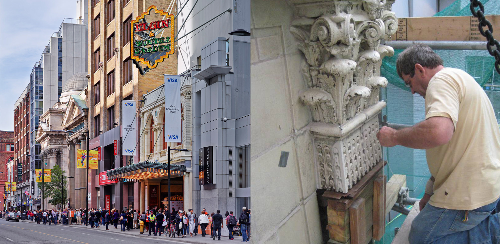 The Elgin & Winter Garden Theatre is a National Historic Site constructed in 1913 as a double-decker Vaudeville theatre. In the 1960s, the demand for new technology and new forms of entertainment resulted in the closure of the Winter Garden Theatre and the transformation of the Elgin Theatre into a cinema.